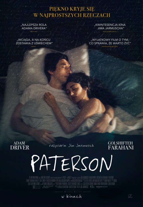 Paterson (Adam Driver) jest kierowcą miejskiego autobusu. Niczego mu nie brakuje. Kocha swoją pełną szalonych pomysłów żonę (Golshifteh Farahani), która każdego dnia tworzy nowy plan na przyszłość. Mężczyzna ma czas na swoją pasję (pisanie wierszy), spacery z psem i spotkania z grupą zaprzyjaźnionych ekscentryków. Jest wśród nich przeżywający zawód miłosny kompan od kufla, wyzwolona singielka przesiadująca wieczorami w barze, czy wiecznie narzekający kolega z pracy, który zazdrości Patersonowi pogody ducha. Jednak na skutek zabawnego zbiegu okoliczności stoicki spokój tytułowego bohatera zostaje poddany próbie